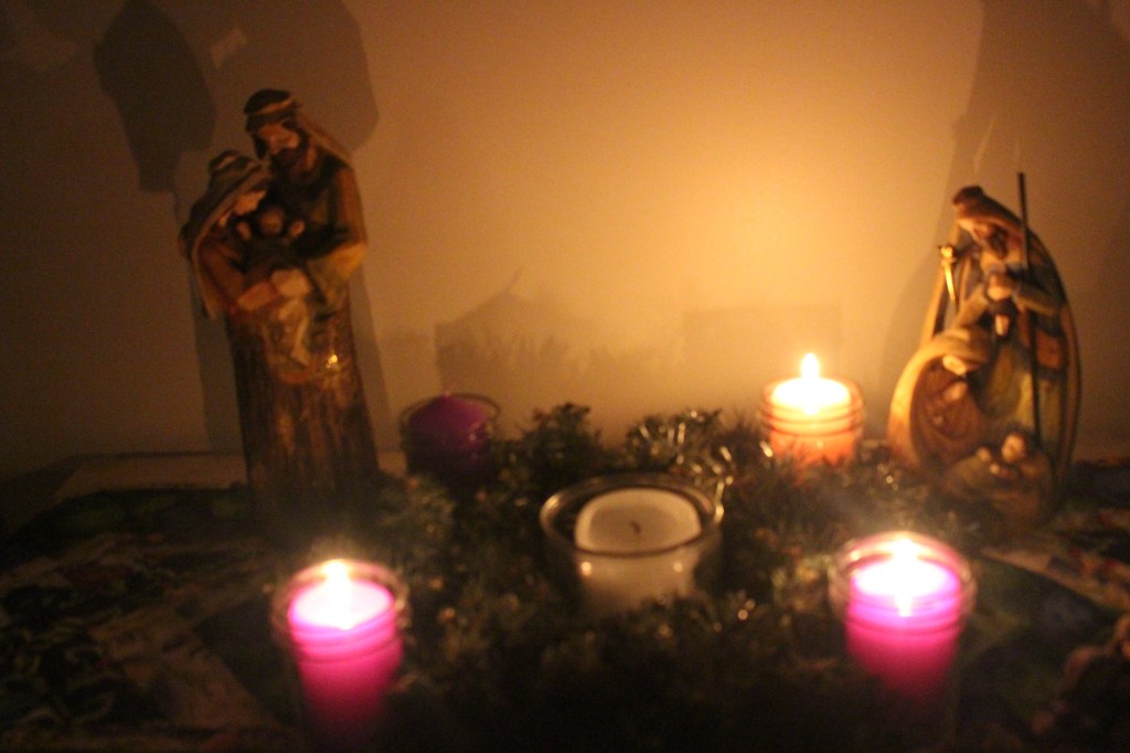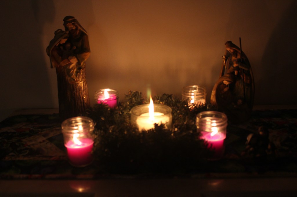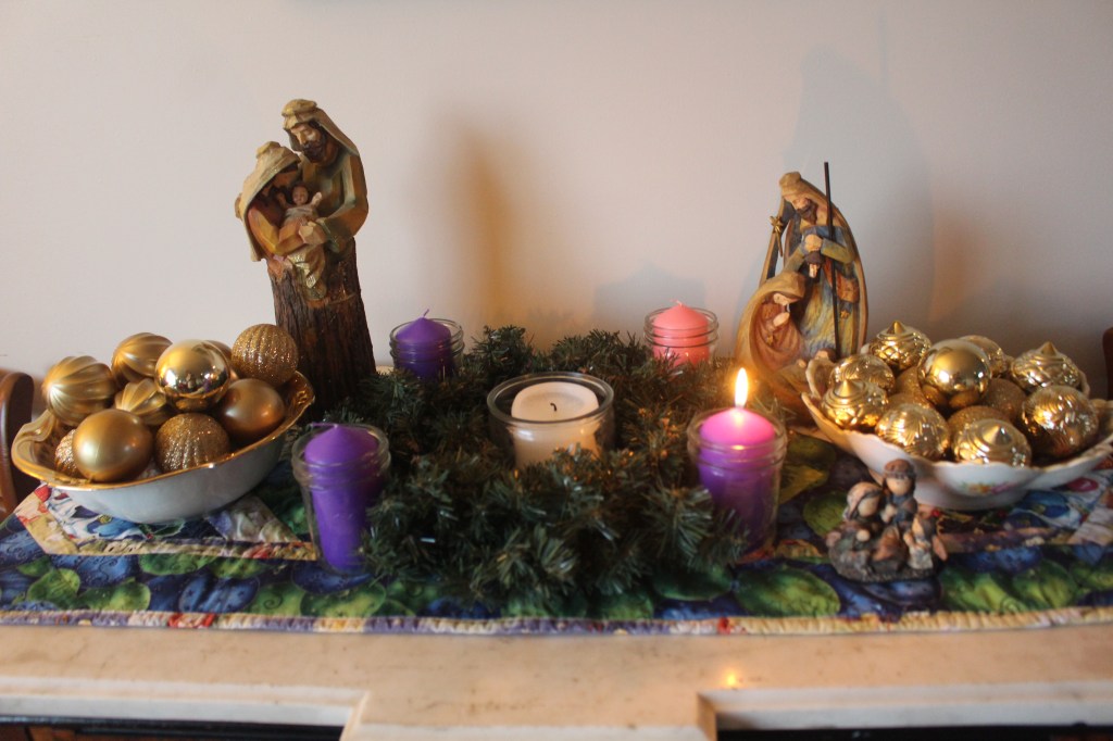 On this first Sunday of Advent my wreath sits on my dining room table.