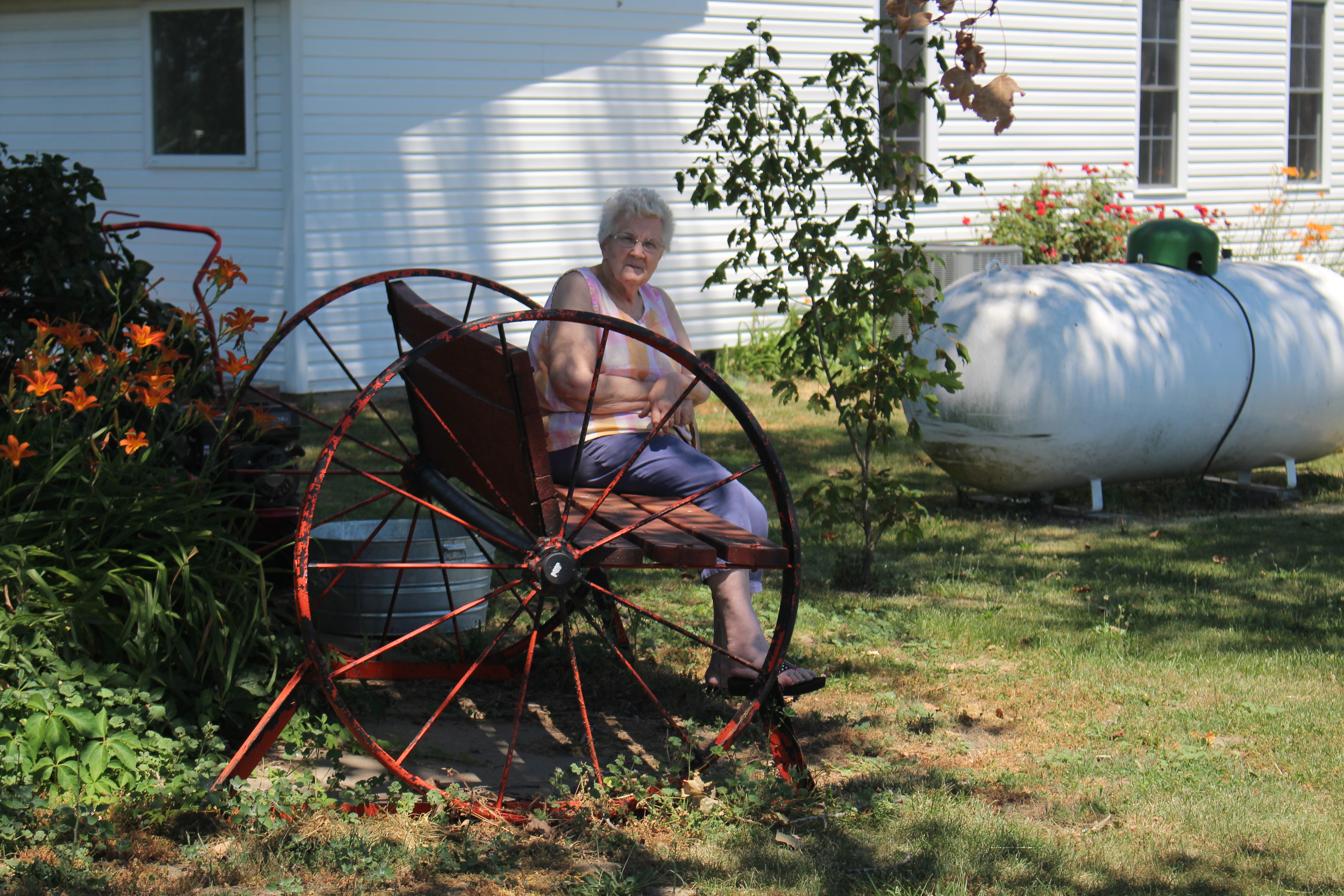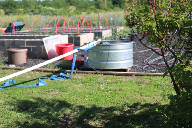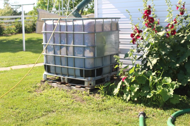 My husband is good at giving presents. He gives me things I want. This is the pump that I use to transfer water from our storage tanks to the tank in the garden. It was sitting on a pallet that I had to move every time I mowed the lawn. I did it but it took a lot of tugging and pulling every week. I mentioned to him the difficulty I was having and he made me this cart that i can wheel anywhere that i need it. I love it!