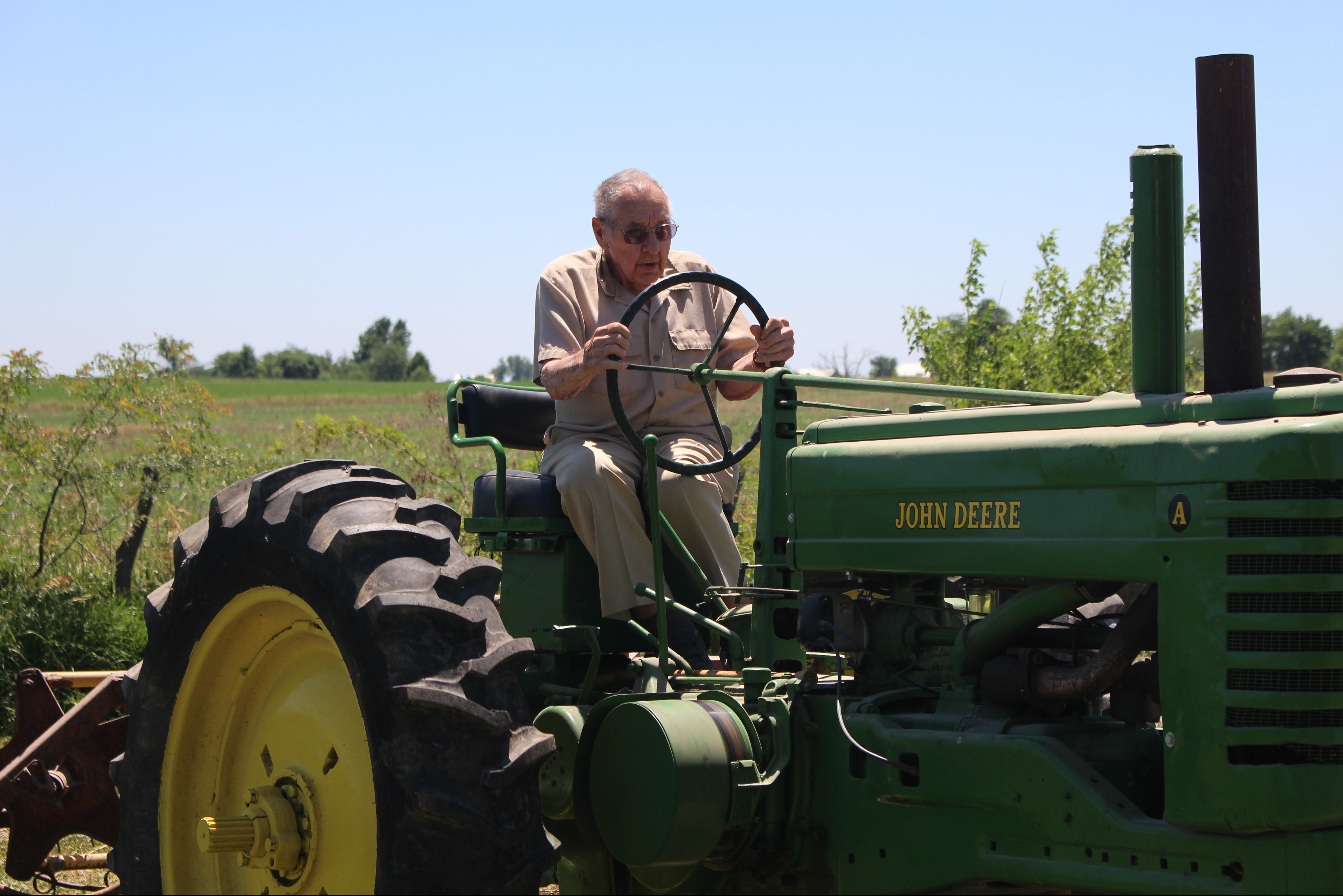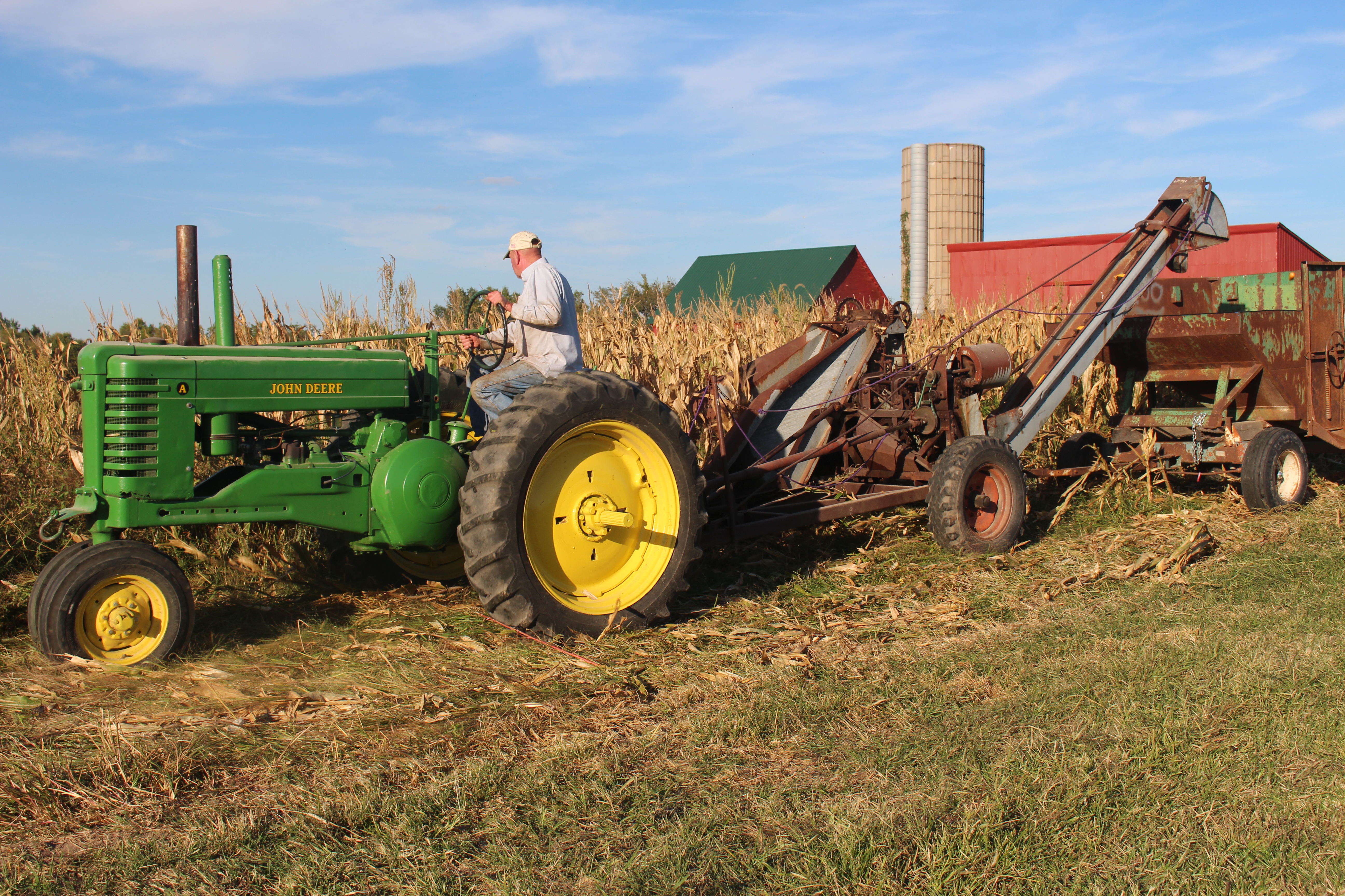But we worked together to get it done. Olin made me my own “bucket truck” by putting a pallet on the forks on the John Deere and attaching a galvanized tub for me to stand in as he lifted me up in the air. (I don’t think he trusted me to lift him up!) But in all fairness he did climb a ladder to join me on the roof of the back porch to help me scrub.