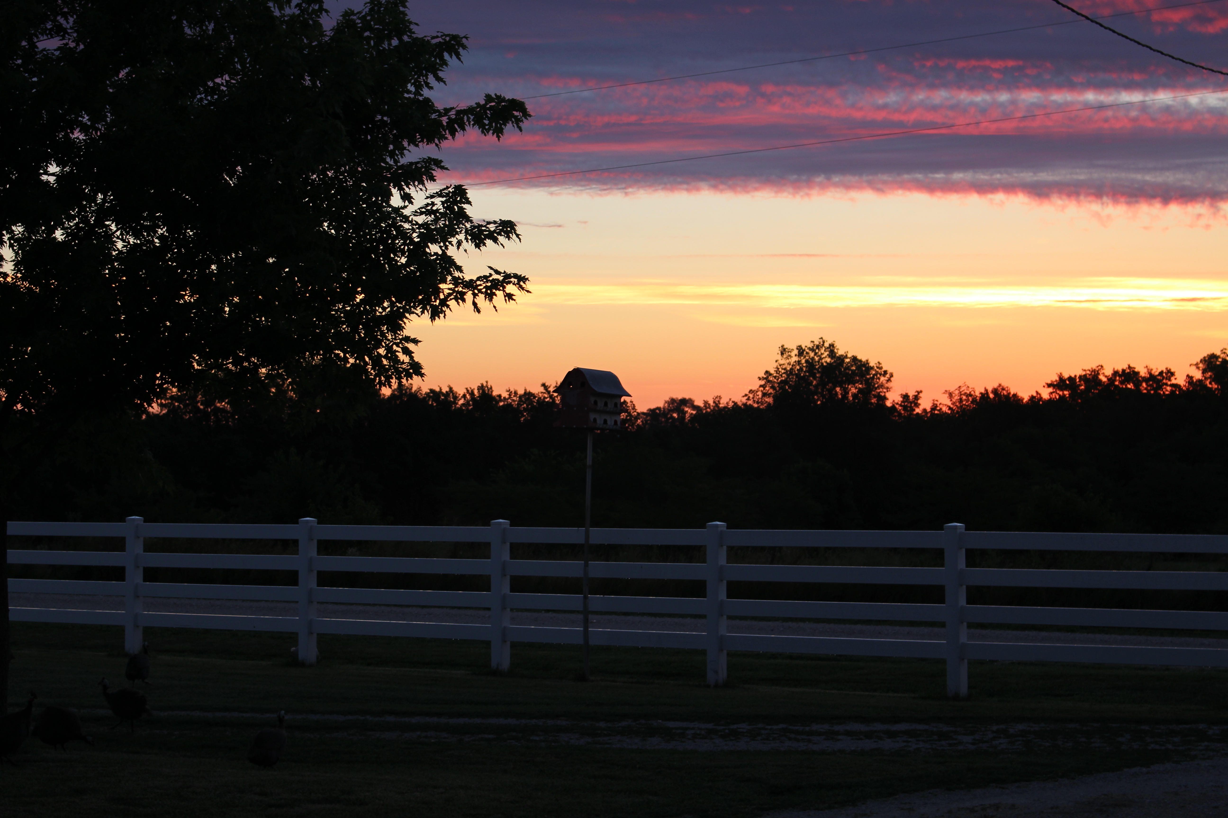 I love to watch each new day dawn. On the farm in Missouri I would sit on the front porch as the sky began to lighten, knowing that it was already shining on my family on the east coast. The shadows would flee as the sun came over the horizon until it finally rose above the trees across the pasture.